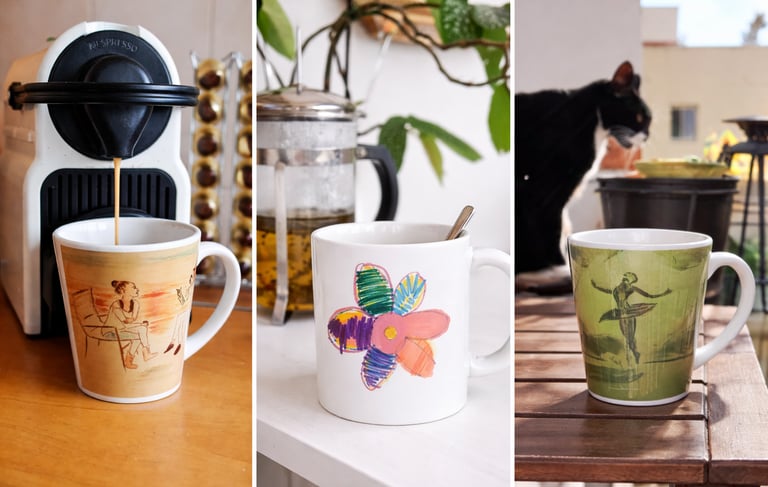 Tus diseños perfectos para ese café, te y momento de relax del dia. Pon esa frase, imagen o dibujo que te apetezca contemplar en tu desayuno favorito